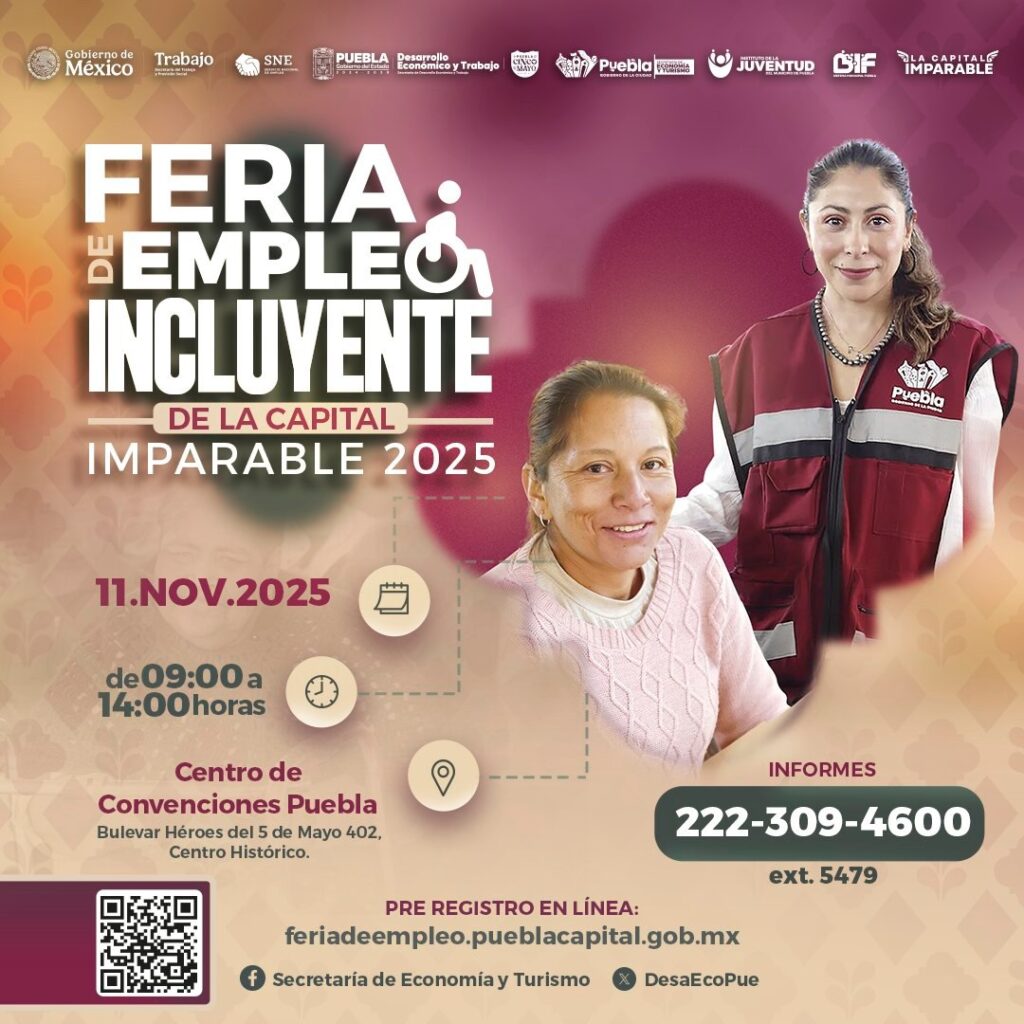 El evento se desarrollará de 09:00 a 14:00 horas en el Centro de Convenciones Puebla, ubicado en el Bulevar Héroes del 5 de Mayo número 402, en el Centro Histórico. Participarán empresas locales y nacionales que ofrecerán vacantes adaptadas a diferentes perfiles y niveles de experiencia, promoviendo entornos laborales accesibles y con igualdad de oportunidades.