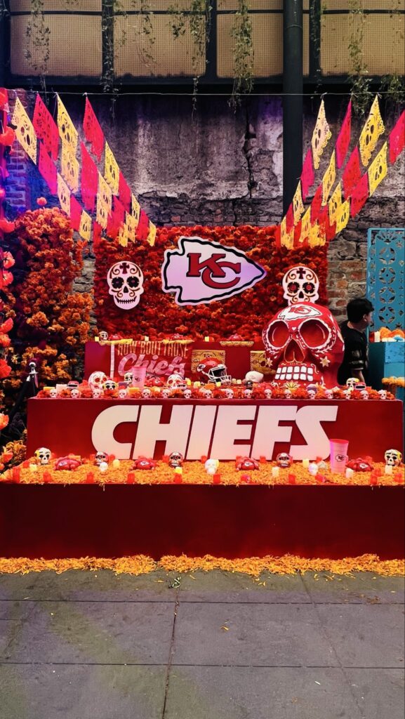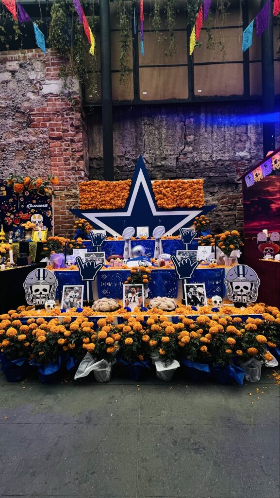 Los equipos participantes, incluidos Dallas Cowboys, Pittsburgh Steelers, San Francisco 49ers, Kansas City Chiefs, Denver Broncos, Houston Texans, Las Vegas Raiders, Los Angeles Rams, Miami Dolphins y Arizona Cardinals, montaron altares con elementos tradicionales como cempasúchil, veladoras, calaveras de azúcar, fotografías de sus leyendas y objetos representativos de cada franquicia. El trofeo Vince Lombardi ocupó un lugar central, convirtiéndose en uno de los principales atractivos del encuentro.